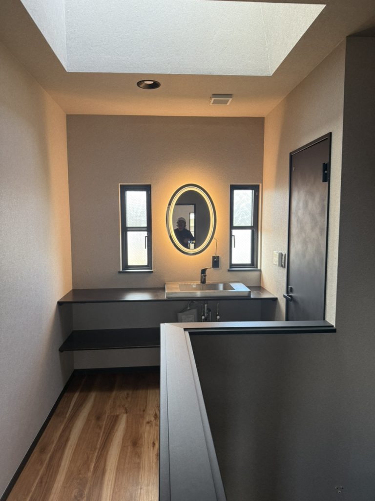 ■ 水まわりは“生活感ゼロ”を追求したモノトーン仕上げ