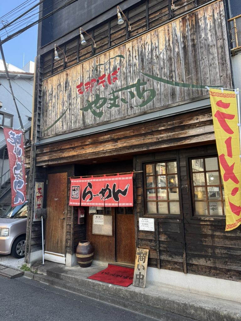 場所は町田駅北口から徒歩3分。賑やかな通りを一本入ると、昭和の風情漂う木造の建物が現れます。ここが、知る人ぞ知る名店**「支那そば やまいち」**です。
