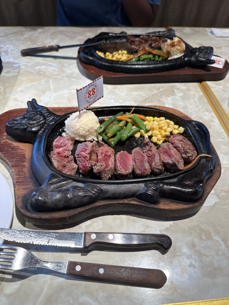 翌日はアメリカンビレッジで、ステーキが人気の「88」に行きました。