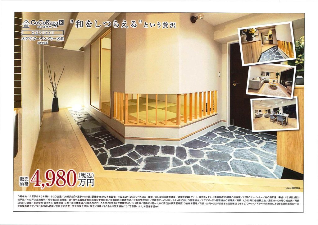 今回の物件は、チラシでも目を引く“和のしつらえ”が特徴。