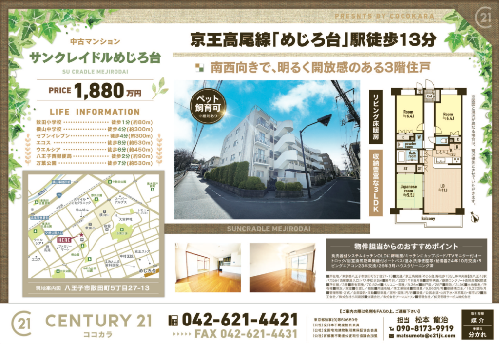 2026年3月5日 admin 新規物件ご紹介! 松本龍治日記 新規物件のご紹介をさせて頂きます! サンクレイドルめじろ台 価格1880万円 中央線、京王高尾線2路線にアクセスできます! 郵便局、小学校、スーパー、駅すべて徒歩で完結できる素敵な立地です! ハウスクリーニング済みの文句なしの物件です! 素敵な物件ですので、お気軽にお問い合わせください😊 RSS