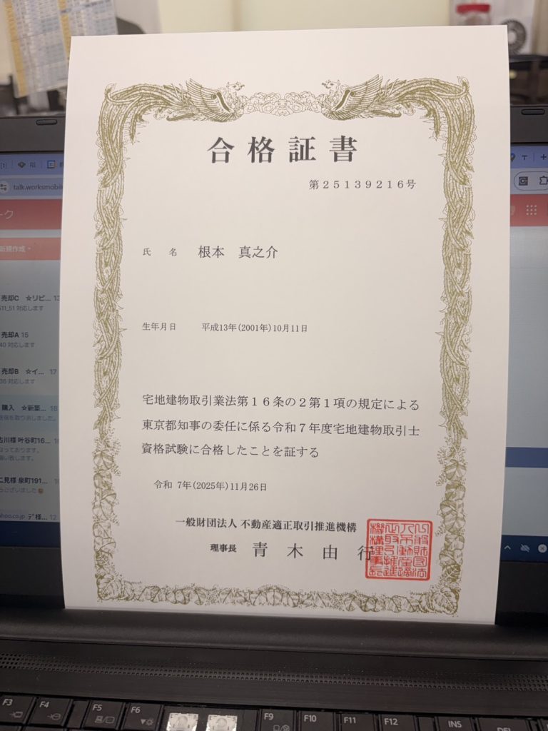 「宅建は絶対に必要な知識だから」と、積極的に背中を押してくれた環境には、感謝してもしきれません。