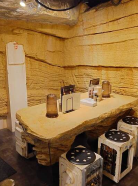一歩足を踏み入れると、打ちっぱなしのコンクリートと幻想的な照明が広がる、まるで「宇宙ステーション」のような近未来的空間。