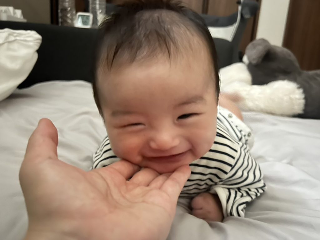 既に寝返りや寝返り帰りを昼夜問わず繰り返し、笑い声も人間に近づいてきて、気づいたら家中を走り回っているような気がしてちょっとビビッてます(笑)